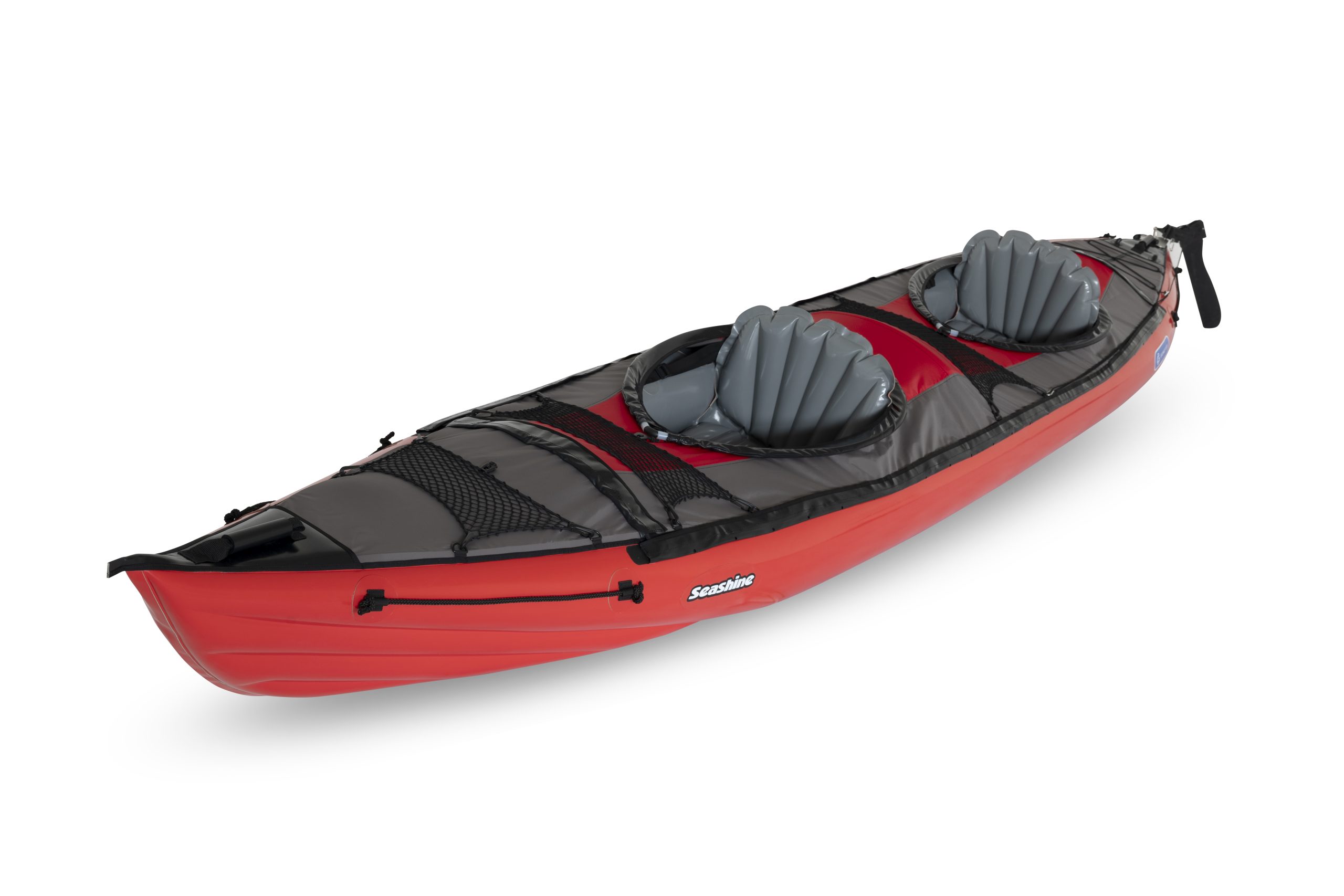 The SEASHINE is an inflatable kayak designed and adapted for navigation on the seas, and for paddling long distances on lakes, estuaries or large rivers. It provides plenty of space for one, two or three paddlers and their baggage for multi-day trips. It can be equipped wiht single or double cockpit and steering rudder.